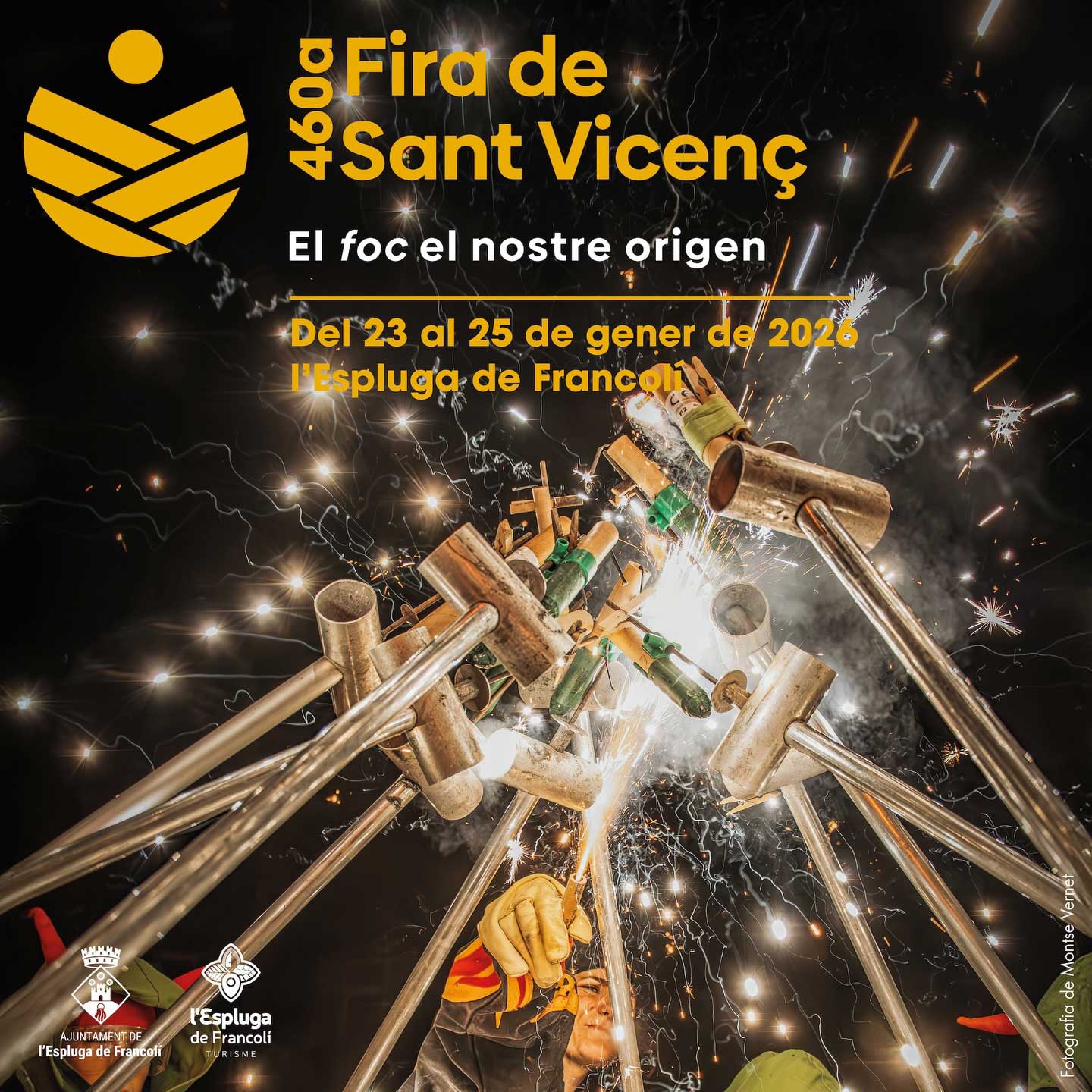 La Fira de Sant Vicenç de l’Espluga de Francolí és una de les celebracions més emblemàtiques de la localitat, i enguany se celebrarà la seva 460a edició. Aquesta tradicional fira, que tindrà lloc entre el 23 i el 25 de gener, porta com a lema “El foc, el nostre origen”, i se centrarà en retre homenatge a les arrels històriques i culturals del municipi, especialment entorn del foc, que ha estat un element essencial al llarg dels segles en la vida dels habitants de la zona.