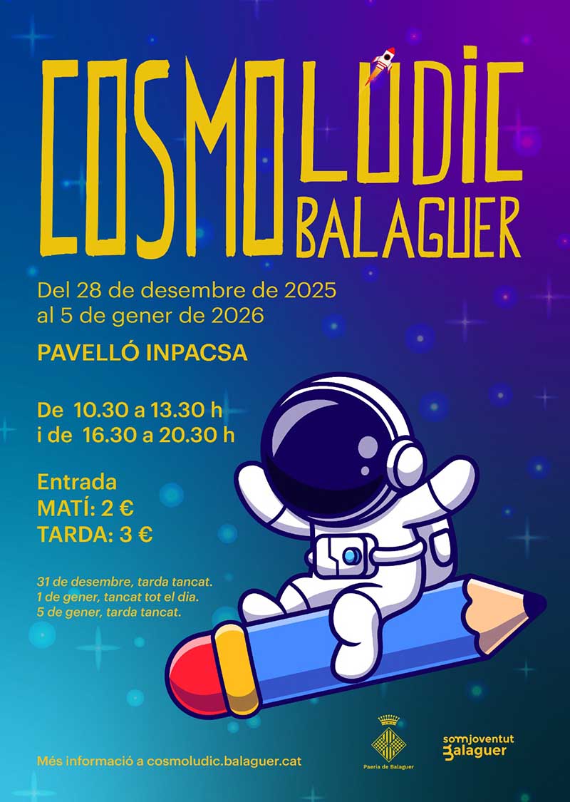 Amb una oferta variada, educativa i inclusiva, Cosmolúdic Balaguer 2025-2026 es consolida com una de les principals activitats familiars de Nadal a la ciutat, una oportunitat perfecta per compartir temps de qualitat, aprendre i gaudir en família durant les vacances nadalenques.