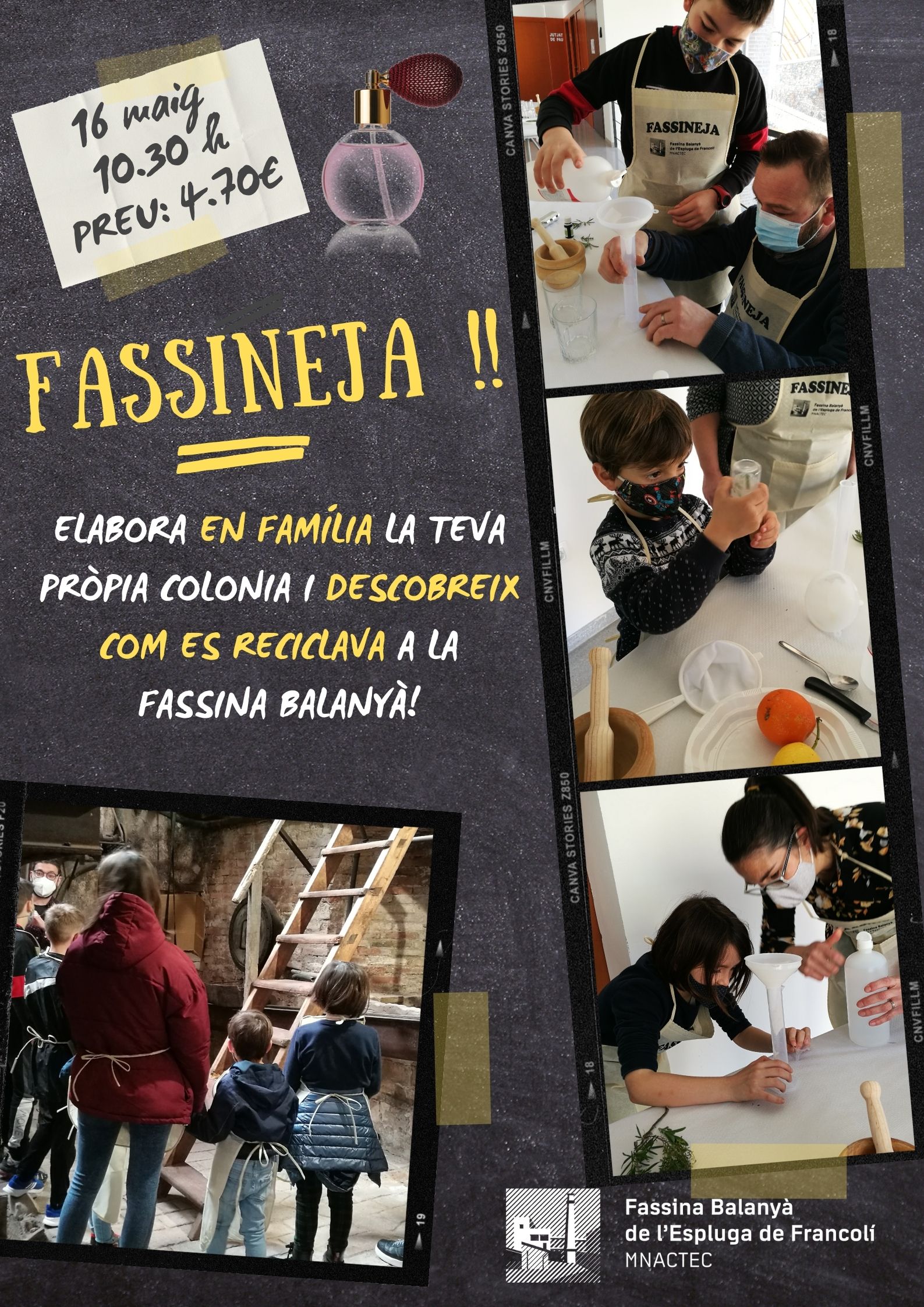 “FASSINEJA” és una nova visita-taller familiar que s’ofereix al Museu Fassina Balanyà de l’Espluga de Francolí. Es tracta d’una visita amb una mirada diferent, destinada als infants i adolescents, on podran endinsar-se en espais restringits pel públic general i podran tocar i olorar molts productes relacionats amb l’antiga fàbrica d’aiguardent de la Fassina Balanyà.