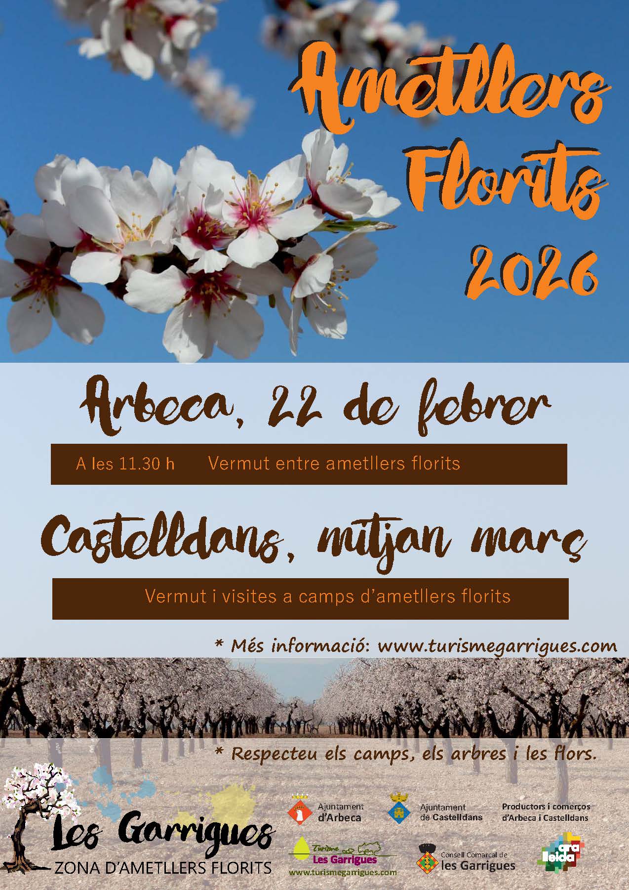 El 22 de febrer, el municipi d’Arbeca dona el tret de sortida a la temporada amb la tradicional Caminada i Vermut entre Ametllers Florits, una proposta que combina natura, cultura i gastronomia local.