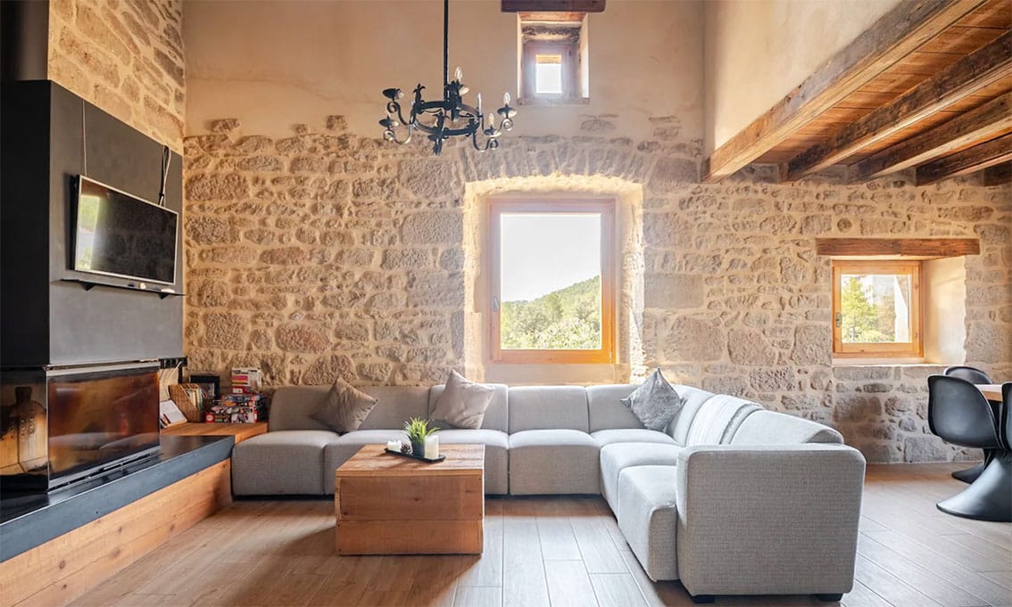 - Llar de foc amb llenya, calefacció per terra radiant i aire condicionat.